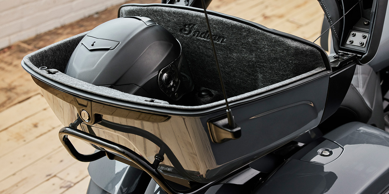 Smart Lean Technologie; Elektronisch einstellbare Stoßdämpfer-Vorspannung; Sitzheizung; Integriertes Fahrlicht in der unteren Verkleidung; Stauraum in der unteren Verkleidung; 7-Zoll-Touchscreen mit Ride Command inkl. Apple CarPlay-Integration; Wählbare Fahrmodi; Deaktivierung des hinteren Zylinders; Tempomat; Reifendrucküberwachung; Fernverriegelbare Satteltaschen und Topcase; über 136 l Stauraum; Highway-Bars; verstellbare Soziusfußrasten; Brembo-Bremsen; ABS; schlüssellose Zündung; rahmenfeste Verkleidung; elektrische Windschutzscheibe; verstellbare Lüftungsschlitze in der Verkleidung; beheizbare Griffe; 200-Watt-Audiosystem mit AM/FM, Bluetooth, USB, Smartphone-kompatiblem Eingang; 12-V-Ladeanschluss