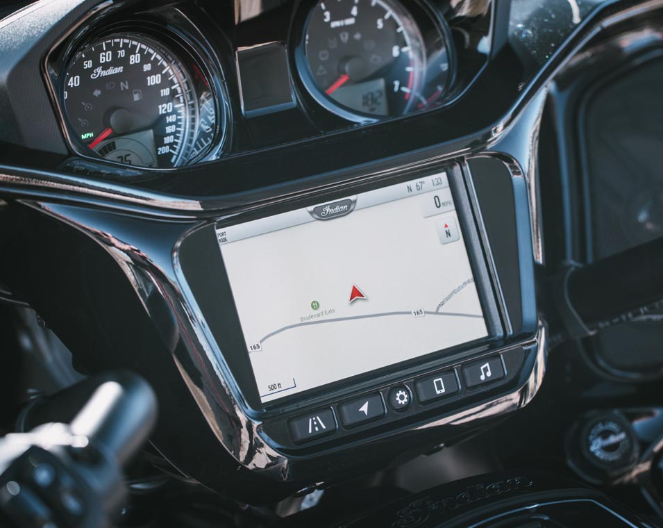 Ride Command® 7-Zoll-Display mit vorinstallierter GPS-Navigation, Apple CarPlay®, Bluetooth®-Konnektivität, konfigurierbaren Anzeigen, Fahrstatistiken und weiteren Funktionen.